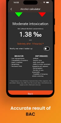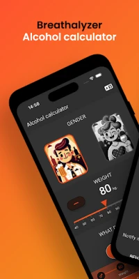 Alcohol Calculator (Breathalyzer) - Track your Blood Alcohol Content (BAC) and Sobriety Level based on the internationally recognized Widmark formula. Simply input the amount of alcohol consumed and let the app calculate your BAC and level of intoxication. Stay safe and responsible while having a good time.