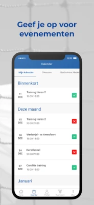 - Geef jouw aanwezigheid door voor wedstrijden, trainingen en evenementen