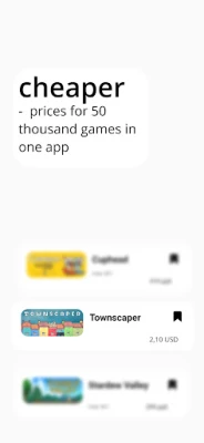 Cheaper - will help you find any game from ps stroe and Steam, as well as tell you when it's better to buy it Now you don't have to think about missing out on the promotion for the game you want, it's cheaper to report a discount through the platform Benefits of this application: • absolutely free, there are no additional payments in the application •Thousands of games from Ps Store and Steam are here! • convenient discount reminder through the terminal •no ads in the app • simple and clear design • does not collect your data •occupies little memory