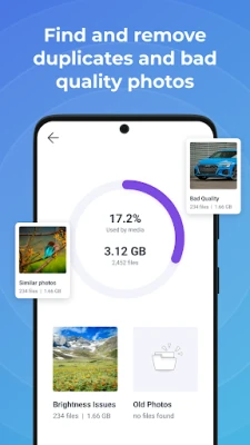 Scan your media and discover photos that are duplicates have quality and brightness issues.
