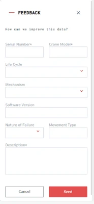 For a given fault code, you can retrieve the cause and solutions pertinent to the crane components this fault code is connected to. This app is dedicated to qualified aftermarket technicians, trained for the comprehensive understanding of the content published. Within the app, please feel free to send us a feedback to improve the data!