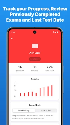 All your practice results are saved locally and displayed on a chart so you can see how your results are trending over time. PPL Exam Preparation also displays all you topic averages right from the topic library screen so that you can quickly identify which topic needs more work.